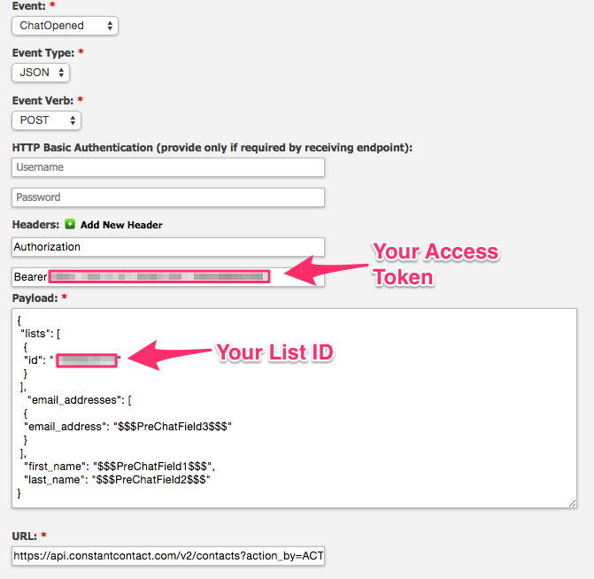 - In order to setup this integration in LiveHelpNow, you will need an API Key, Access Token and List ID from your Constant Contact account.