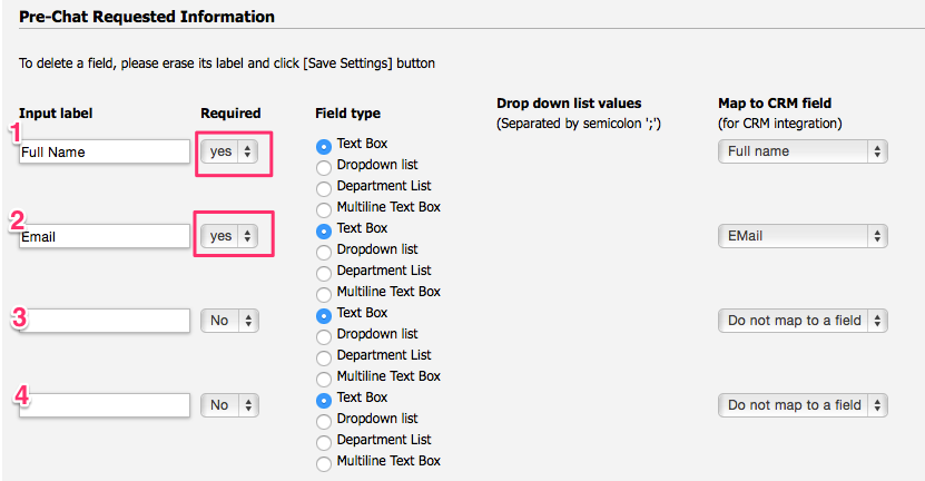 Please Note: The $$$FirstName$$$ and $$$LastName$$$ labels in the Payload syntax above assume you are collecting the chat user’s Name in the Pre-Chat Requested Information in LiveHelpNow mapped to “FullName” CRM Field.