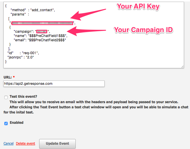 Please note that this process requires you provide the GetResponse Campaign ID for the campaign that you want to offer as a subscription option for the LiveHelpNow Chat User.