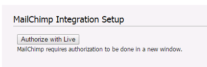 - Click “Authorize with Live” button to be redirected to MailChimp for authorization.