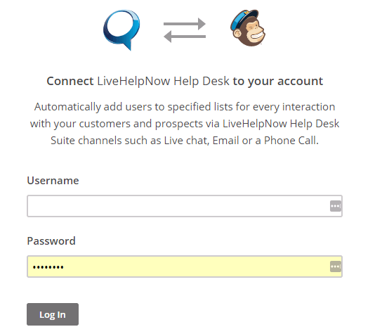 LiveHelpNow help desk software collects a lot of information about your customers. The integration with MailChimp will allow for easy transfer of chatter information into your MailChimp account list for additional marketing, upsell and cross sell flow.