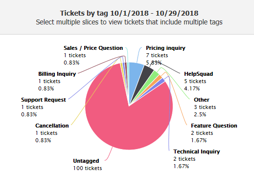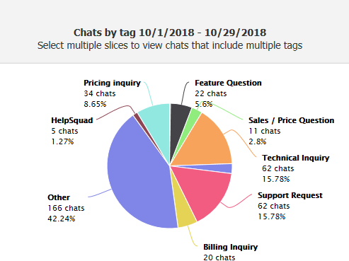 Once your chats are tagged, you are able to generate reports to see chat and email interactions organized by tag. You will be able to visualize customer trends across different chat categories.