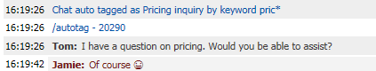 LiveHelpNow auto tagging feature in action