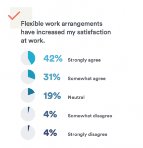 73% of employees said flexible work arrangements increased their satisfaction at work.