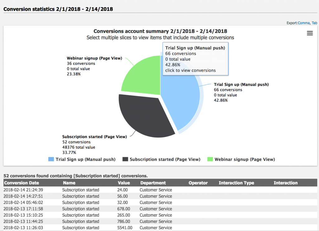 Live chat and email support puts a support network in place for your prospects. Now, you can use Conversion Tracking to find out how and where your leads are converting after a chat or a responded support email.