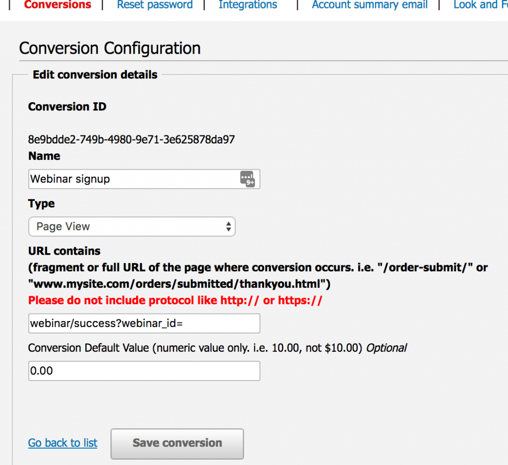To setup conversions, please head to Admin Panel -> My account -> Conversions
