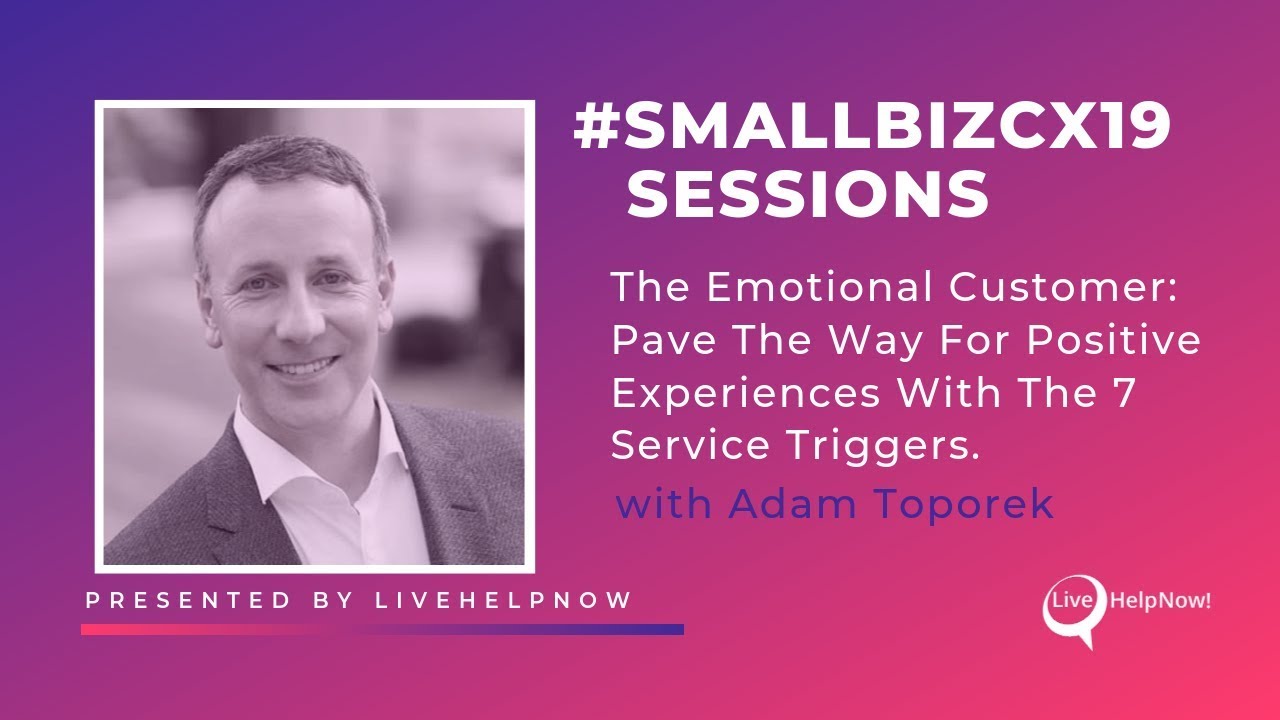 In this #SmallBizCX19 session, Adam Toporek defines the seven service triggers and explains how they can be used to create positive customer experiences. We discover the role customer emotion plays in experience and how triggers can define a customer's journey, explore the 7 Service Triggers and how to use them in experience design, and learn strategies to proactively prevent triggers from occurring and to address them when they do.