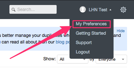 1. Login to your Capsule CRM account, click on your name on the top right of the screen and then click “My Preferences” in the dropdown.