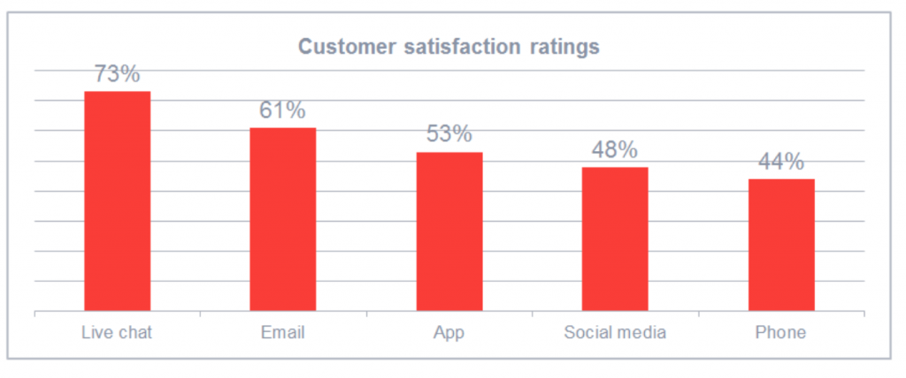 According to eDigital’s customer service benchmark, live chat has the highest satisfaction rate for customer service compared to any other avenue.