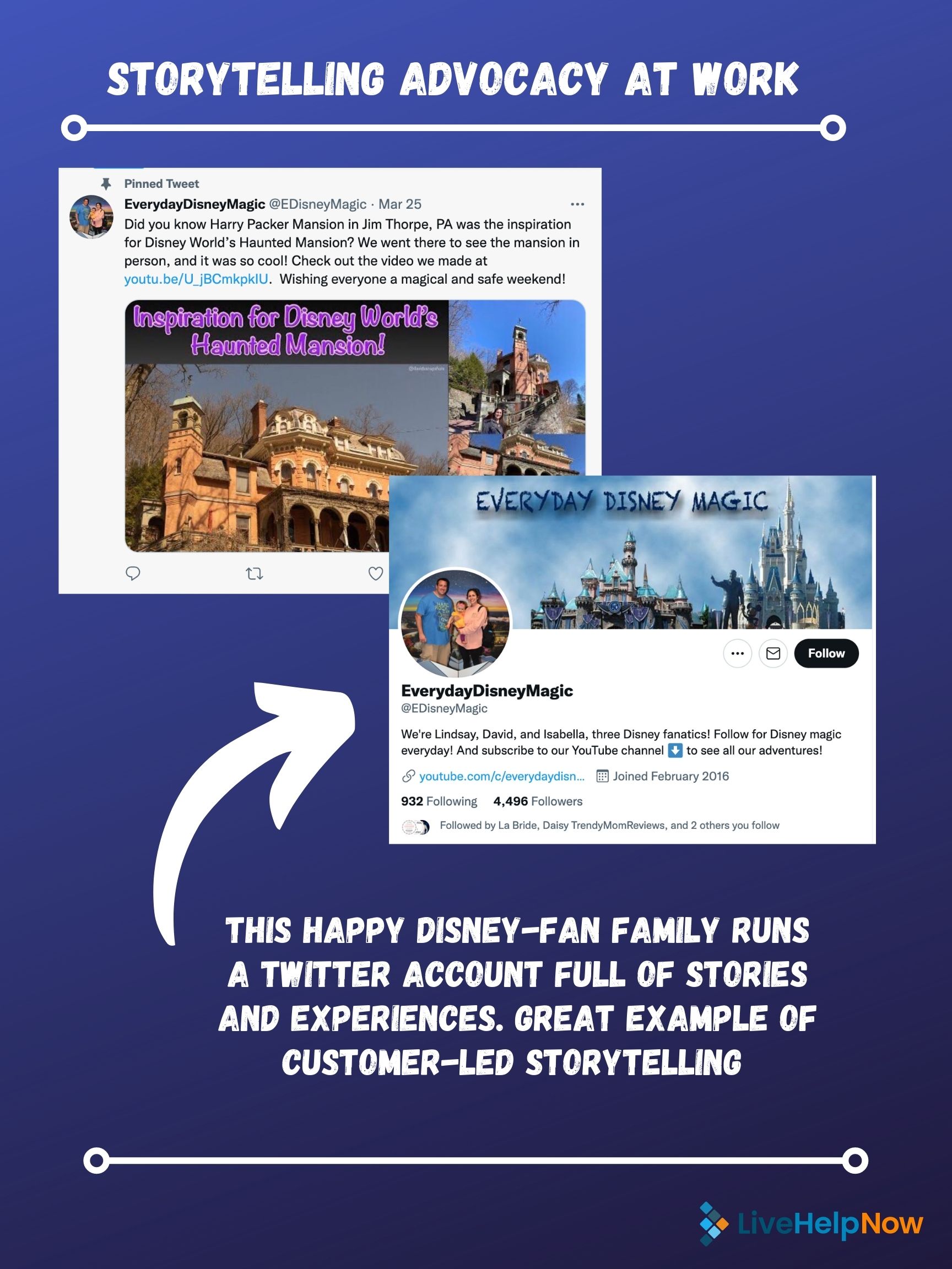 One very vivid – and quite magical – example of storytelling as part of customer experience is none other than Disney. The company lives and breathes customer experience excellently and treats every customer with exceptional care. The company has developed a concept called Guestology. What it is an understanding of customers on a deep level. Guestology combines demographic data and information about customers’ needs, wants, preconceived notions, and emotions. Guestology helps businesses identify and commit to a shared purpose. For Disney, this purpose is to create happiness through customer experience.