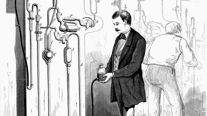 Men making Thomas Edison’s lightbulbs, illustration from Scientific American magazine, 1880. Source