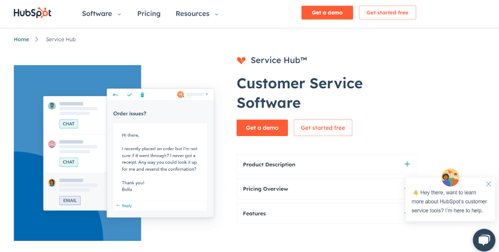 HubSpot comes with a video messaging feature that lets your team create personalized help videos that appeal to visual learners. It also connects your various communication channels into a central inbox for easy response generation.
