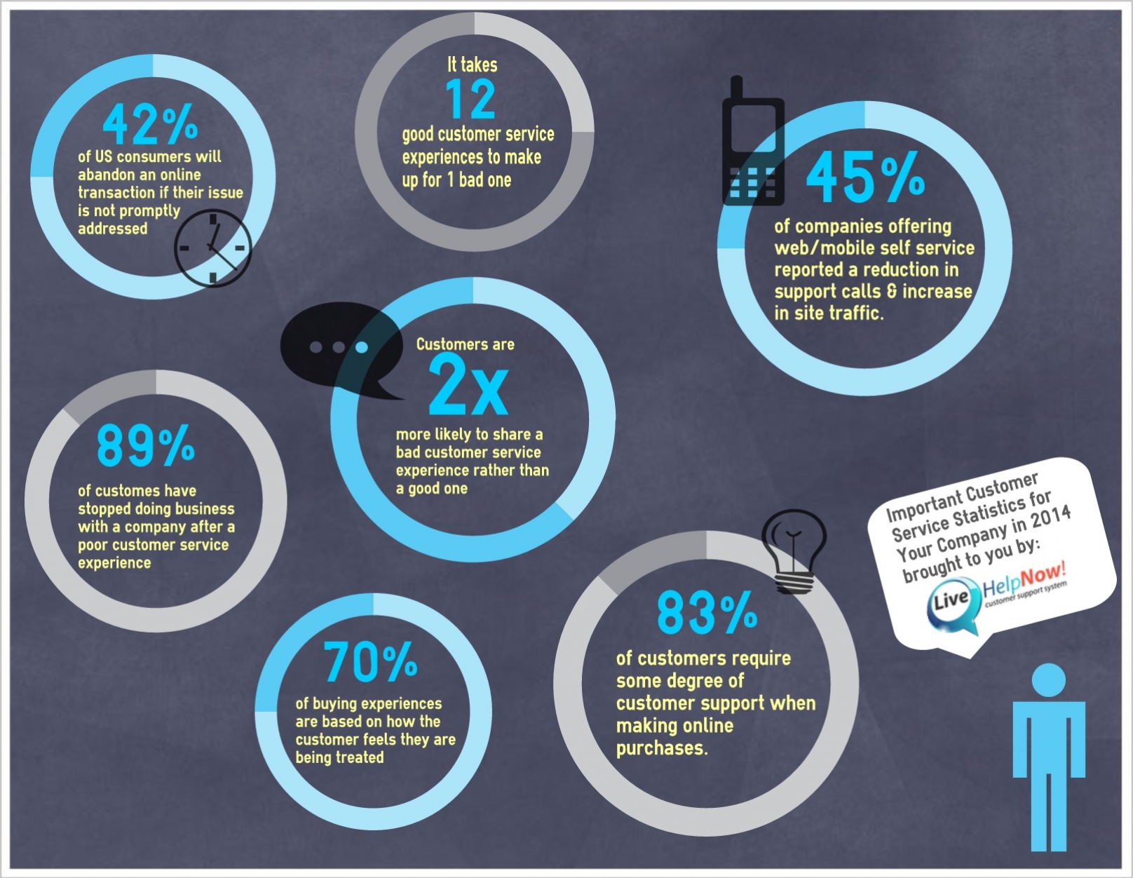 1. 42% of US customers will abandon their online transaction if they do not feel as though their issues are being addressed in a timely manner. This could not be a more depressing statistic. This means that almost half of your customers could be seconds away from completing a transaction, but any delay on your end could send them packing. These lost sales can add up, so be sure to provide timely responses and status updates about any and all customer inquiries that come your way.