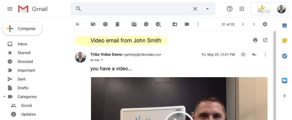 The reason? Because it helps you to differentiate your email from all of the other emails in your inbox. It makes sure that your email is not like any other email they receive that day. That’s how it entices them to click and watch your video.